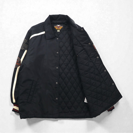HARLEY DAVIDSON 00年代 レーシングジャケット ナイロン 中綿 コーチジャケット L ブラック 刺繍 サイドライン
