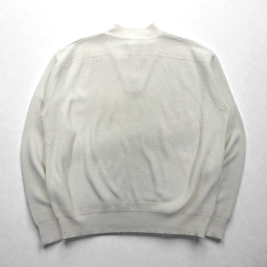 L.L.Bean 80年代 USA製 ヘンリーネック リブニット セーター XL ホワイト コットン ハーフボタン