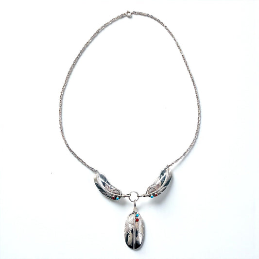 CHARLEY Vintage Navajo Necklace ナバホ族 フェザー ネックレス シルバー STERLING ホールマーク 刻印 インディアンジュエリー
