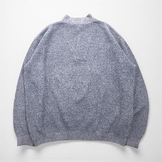 L.L.Bean 80年代 USA製 ハーフボタン リブニット セーター XL ブルー モックネック スタンドカラー