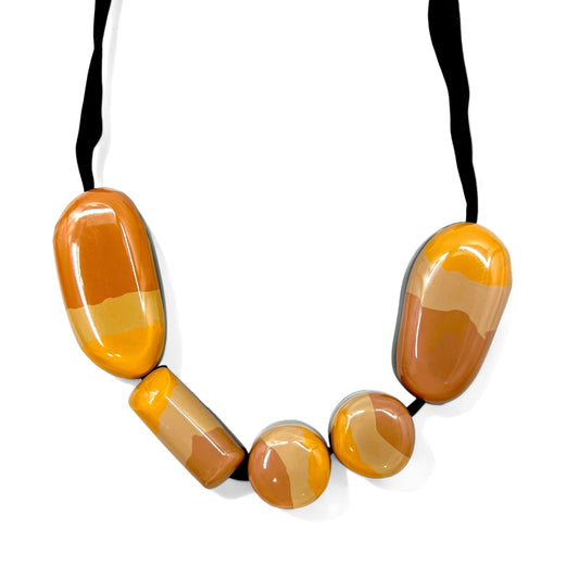 MARNI リボン ネックレス ストーン チョーカー ペンダント ブラウン オレンジ