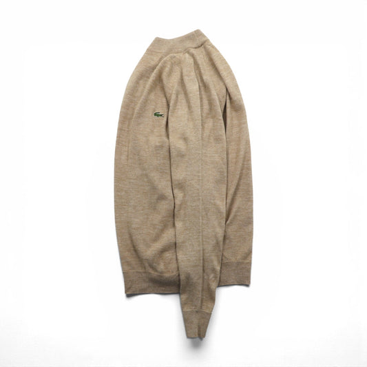 IZOD LACOSTE 70年代 モックネック ニット セーター L ベージュ ウール ワンポイントロゴ 糸巻タグ ハイネック