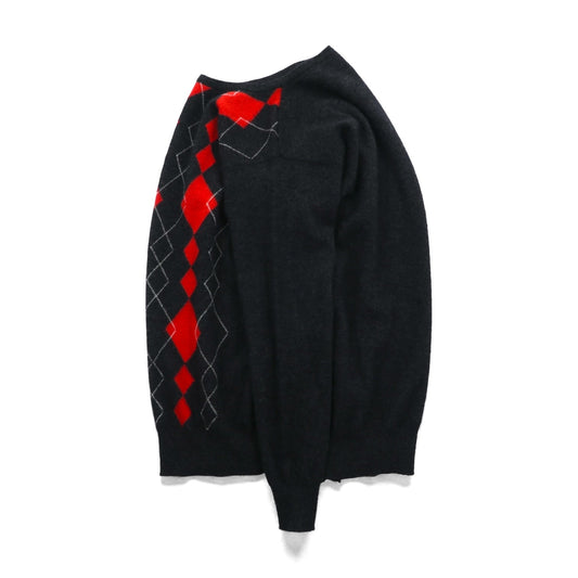 BURBERRY 90年代 アーガイル柄 クルーネック ニット セーター M グレー アンゴラ ウール