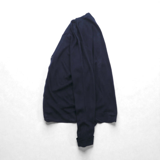 Polo Ralph Lauren 90年代 ラムウール ニット Vネック カーディガン M ネイビー 羊毛 スモールポニー刺繡