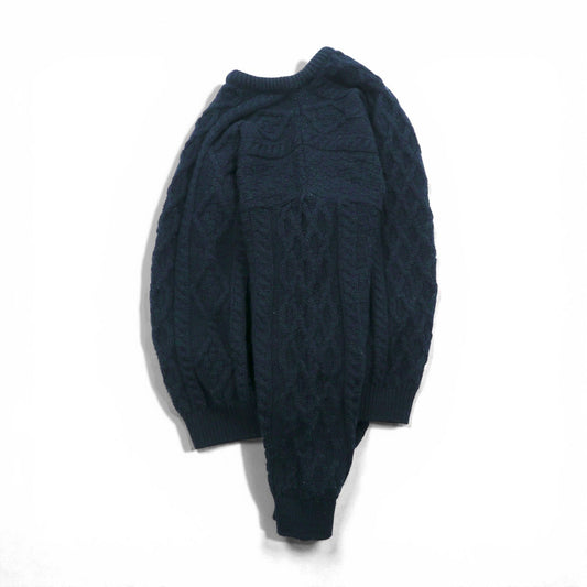 J.CREW フィッシャーマン アラン ニット セーター M ネイビー ローゲージ ケーブル編み