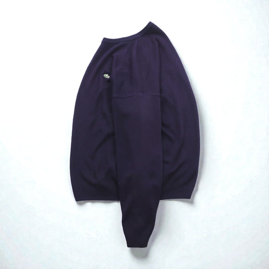LACOSTE 90年代 Vネック ニット セーター XL ネイビー ウール ワンポイントロゴ