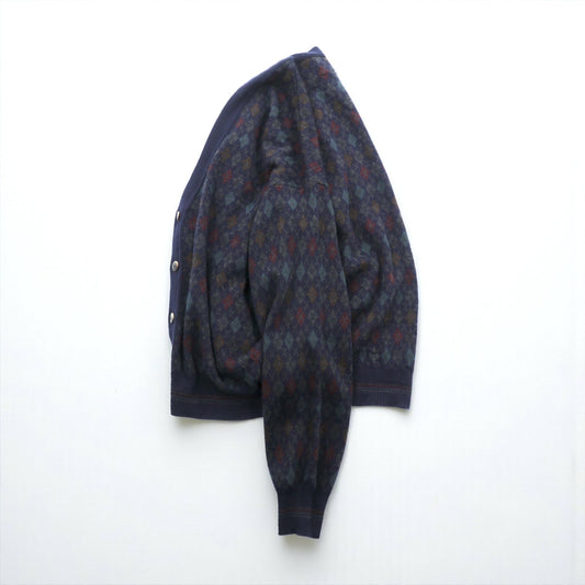 90s ITALY Vintage Knitwear アーガイル柄 ニット カーディガン M ネイビー FLORENCE TRICOT 90年代 イタリア製
