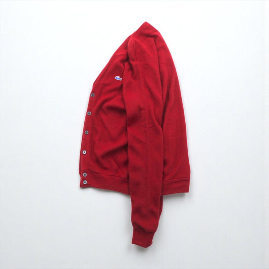 LACOSTE 70年代 ヴィンテージ Vネック ニット カーディガン L レッド アクリル 糸巻タグ