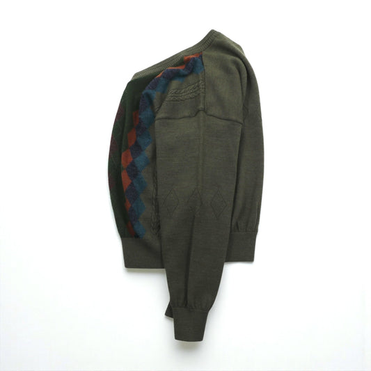 AUSTIN REED 90年代 日本製 ヴィンテージ Vネック ニット セーター M アーガイル柄 タスマニアン メリノウール 羊毛 未使用品