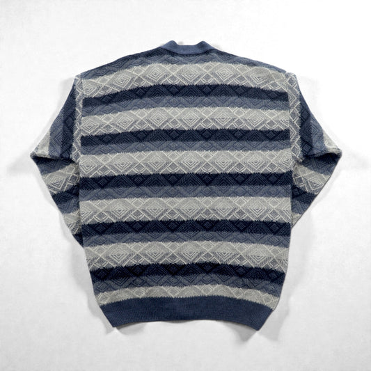 ROBERT STOCK 90年代 ジャガード ニット Vネック カーディガン XL ネイビー ボーダー