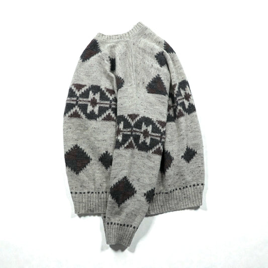 J.C.PENNEY 80年代 モックネック ニット セーター XL 生成り アクリル ノルディック柄