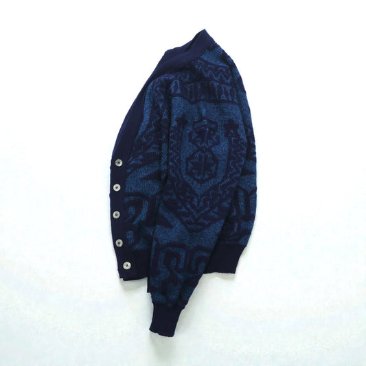 MICHAEL GERALD 90年代 総柄 ジャガードニット カーディガン L ネイビー アクリル