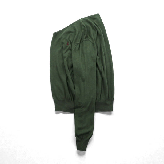 Polo Ralph Lauren 90年代 Vネック ピマコットン ニット セーター L カーキ スモールポニー刺繍