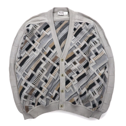 USA製 90年代 St.Croix ジャガード 3D ニット カーディガン XL ベージュ ウール 幾何学模様