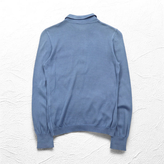 PRADA ボタンフロント ニットシャツ カーディガン M ブルー コットン イタリア製