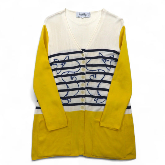 JC de Castelbajac イタリア製 90年代 ロング カーディガン L ベージュ イエロー ボーダー キャラクター刺繍
