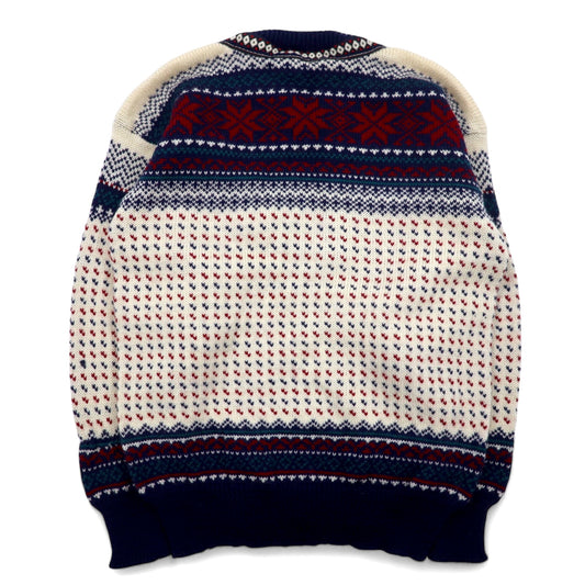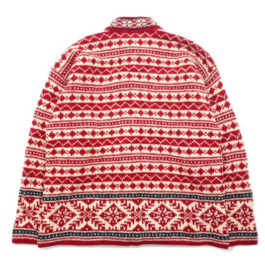 L.L.Bean 90年代 USA製 チロル ニット カーディガン S レッド ホワイト ウール 総柄 チロリアン ノルディック柄 コンチョボタン HT72
