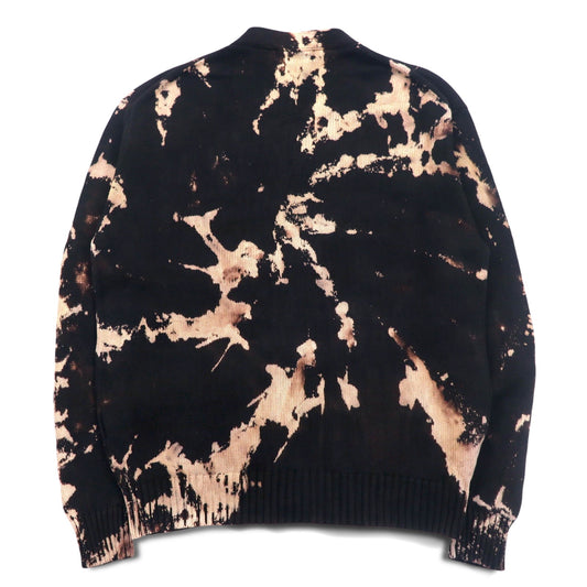 FILA 90年代 タイダイ コットンニット カーディガン L ブラック ブリーチ加工 ワンポイントロゴ刺繍