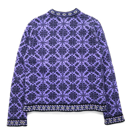 L.L.Bean チロリアン ニット コンチョボタン カーディガン S パープル ウール 総柄 ノルディック柄