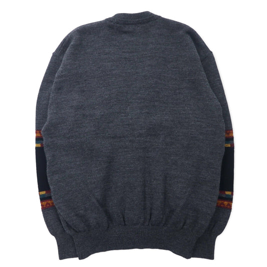 90年代 Michael Gerald 総柄 ジャガード ニット カーディガン M グレー アクリル
