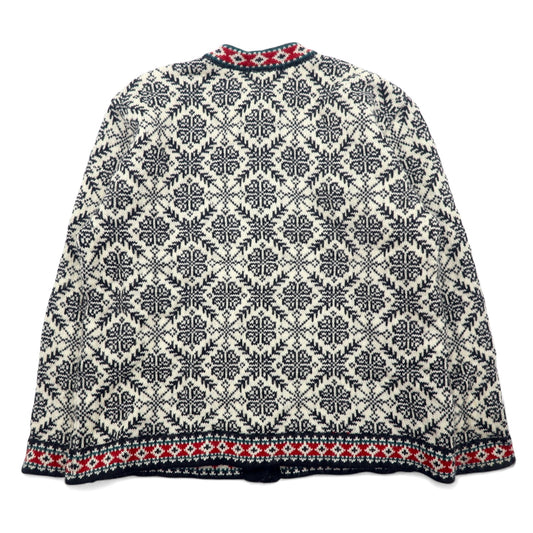 L.L.Bean チロルニット カーディガン L ホワイト メリノウール 総柄 チロリアン ノルディック柄 コンチョボタン UF39 ラトビア製