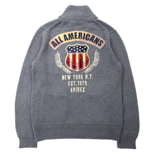 AVIREX ダブルジップ ドライバーズニット ジャケット セーター L グレー コットン ロゴ刺繍 6134009