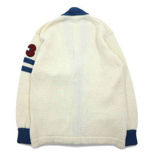 90年代 LANG DICK レタード カーディガン L クリーム ウール ワッペン 日本製