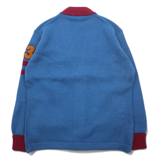 90年代 LANG DICK レタード カーディガン L ネイビー ウール ワッペン 日本製
