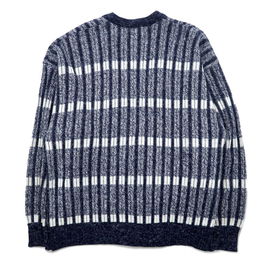SEARS 80年代 アクリル リブ ニット カーディガン L ブルー ボーダー