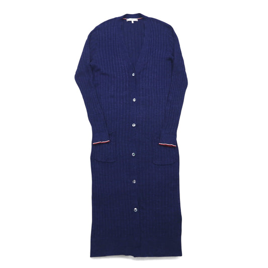 TOMMY HILFIGER ロングカーディガン リネン ニット M ネイビー レーヨン リブ編み