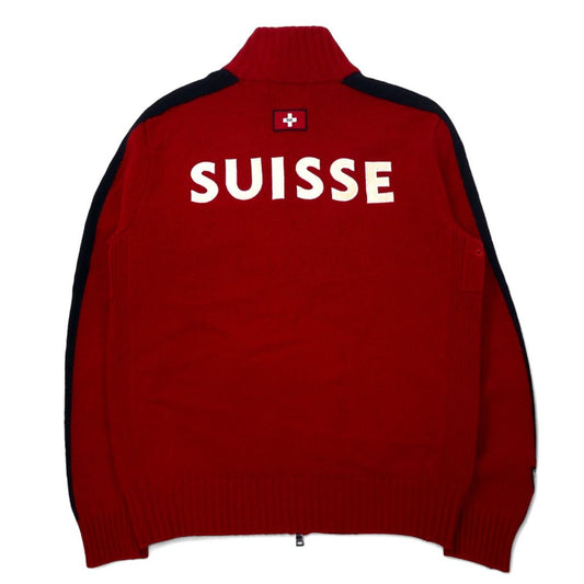 Polo by Ralph Lauren 90年代 ビッグポニー フルジップ セーター ニットジャージ ジャケット L レッド ラムウール サイドライン ダブルジップ SUISSE RL 1934 PC