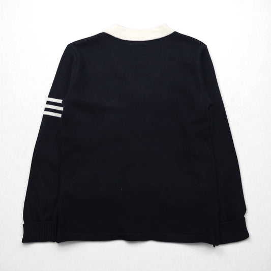 BURBERRY 鹿の子 Vネック ニット カーディガン XL ネイビー コットン