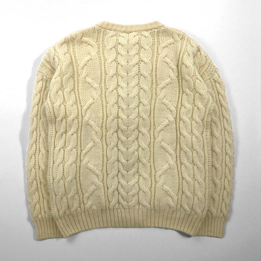 L.L.Bean フィッシャーマン アラン ニット カーディガン XL 生成り ウール 296681 アイルランド製