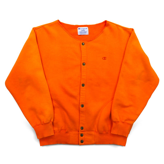 Champion 90年代 スナップカーディガン スウェット ブルゾン L オレンジ サイドポケット 裏起毛
