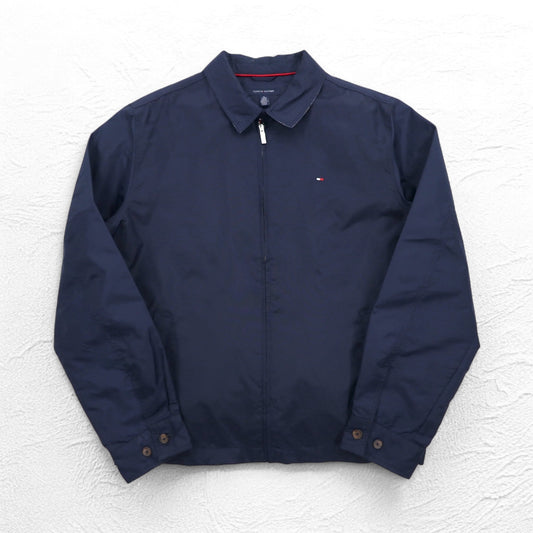 TOMMY HILFIGER スウィングトップ ハリントンジャケット XL ネイビー ナイロン 裏地チェック ワンポイントロゴ刺繍