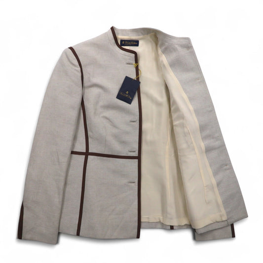 Brooks Brothers マオカラー チロリアンジャケット パイピングジャケット M ベージュ リネン混 未使用品