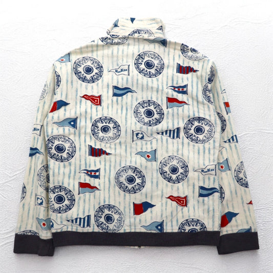 BLUE BLUE スタンドカラー ジップアップジャケット M ホワイト 総柄 フラッグ マリンデザイン 日本製
