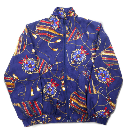 90年代 BOGARI STUDIO 総柄 シルク ジップアップ ブルゾン M ネイビー