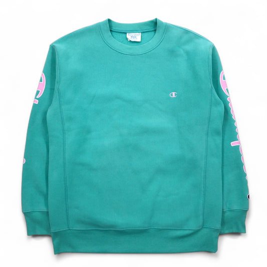 Champion リバースウィーブ REVERSE WEAVE スウェット M グリーン 裏起毛 青単タグ 復刻 袖プリント ホンジュラス製