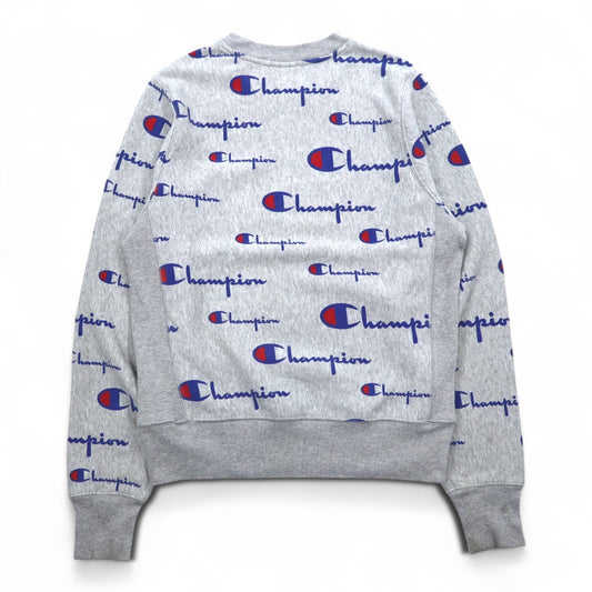 Champion リバースウィーブ REVERSE WEAVE 総柄 スウェット XL グレー 青単タグ 復刻 ホンジュラス製