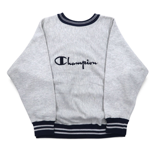 Champion 90年代 USA製 刺繍タグ リバースウィーブ REVERSE WEAVE リブライン スウェット M グレー スクリプトロゴ 刺繍