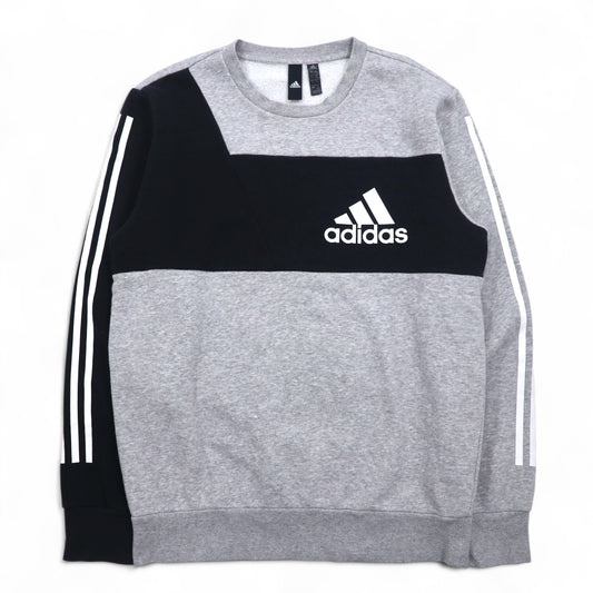 adidas スポーツ ID クルー スウェット XL グレー ブラック 裏起毛 3ストライプ Sport ID EB7589