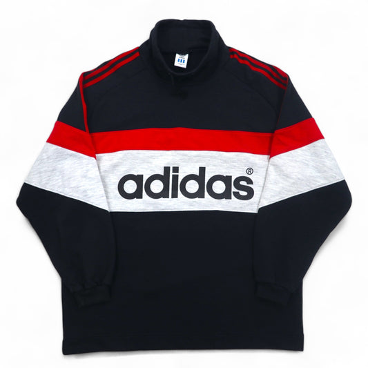 adidas 90年代 デサント社製 ドローコード ハイネック スウェット L ブラック 両面プリント 日本製