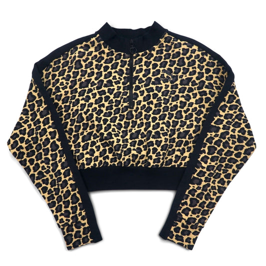 PUMA クロップド ハーフジップ スウェット M レオパード ベージュ 裏起毛 サイドライン