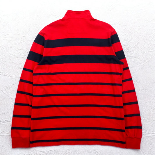 CHAPS ハーフジップ スウェット L レッド ボーダー コットン ワンポイントロゴ刺繍