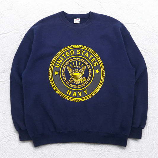 Vintage 90s USA Made US NAVY Sweatshirt SOFFE スウェット XL ネイビー 両面プリント ミリタリー