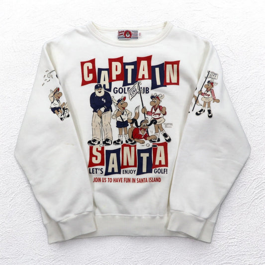 Captain Santa 80年代 キャラクタープリント スウェット M ホワイト 両面プリント 日本製