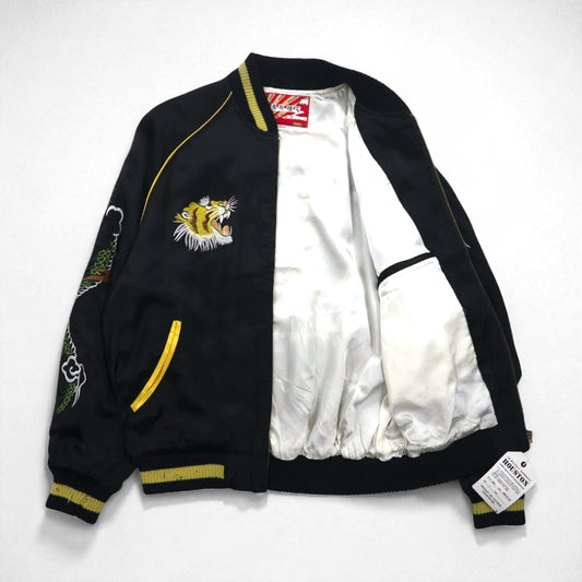 HOUSTON 90年代 日本製 スカジャン L ブラック ナイロン 刺繍 JAPAN 虎 龍