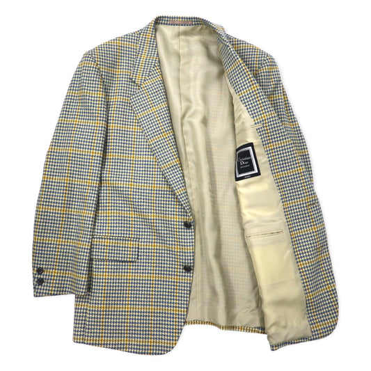 Christian Dior MONSIEUR オールド 2B テーラードジャケット L イエロー ブルー グレンチェック ウール カシミヤ混 日本製