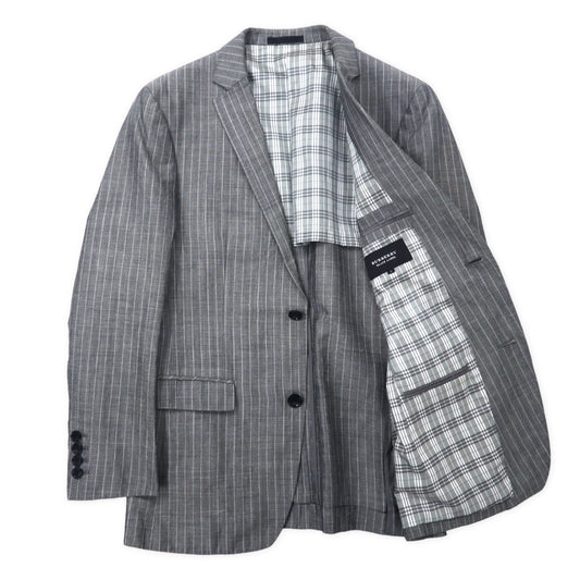 BURBERRY BLACK LABEL 2B テーラードジャケット S グレー ストライプ ウール リネン混 裏地ノバチェック D1E22-383-06